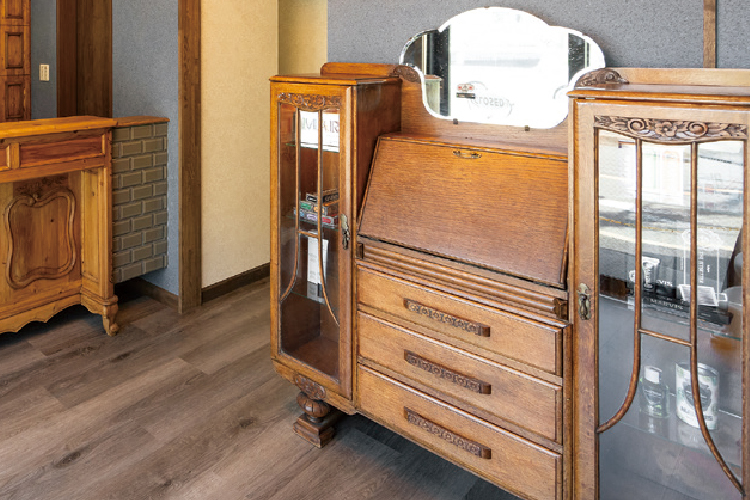 鈴木杏奈院長の“好き”が詰まった、歯科医院とは思えないお洒落な内装が特徴。受付のカウンター、ショーケース、ビューローを鈴木院長が先に選択し、そのテイストに合わせて内装・インテリアを設計会社と固めていった。